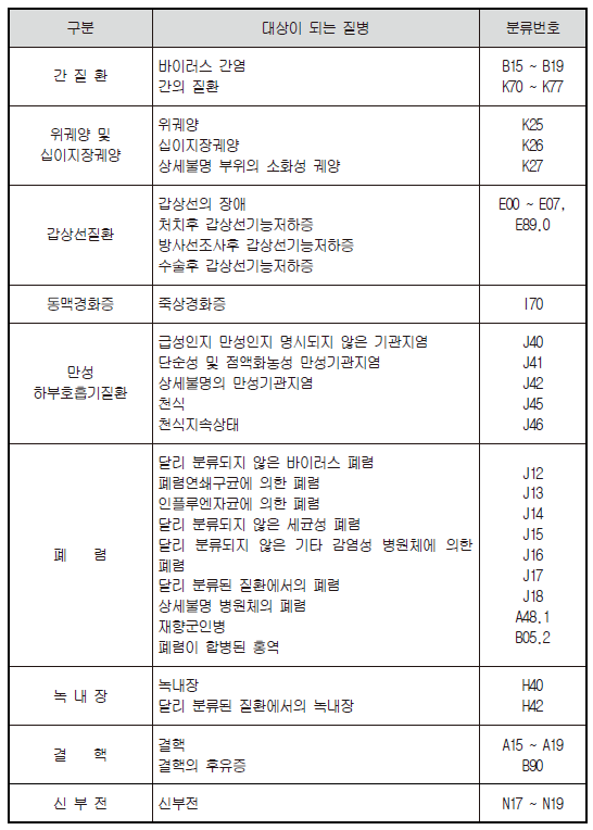 ③ 제1항 및 제2항에도 불구하고 아래에 각 호의 경우에는 제1항의 ‘13대질병’으로 진단받은 것으로 간주합니다.