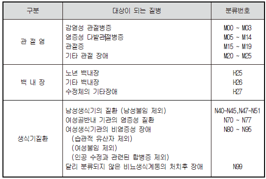 ④ 제1항 및 제2항에도 불구하고 눈 관련 질환의 경우 레이저(Laser)에 의한 수술을 포함합니다.