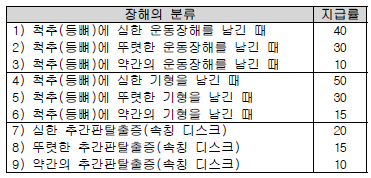 1) 하나의 장해가 관찰방법에 따라서 장해분류표상 2가지 이상의 신체부위 또는 동일한 신체부위에서, 하나의 장해에 다른 장해가 통상 파생하는 관계에 있는 경우에는 각각 그 중 높은 지급률만을 적용한다.