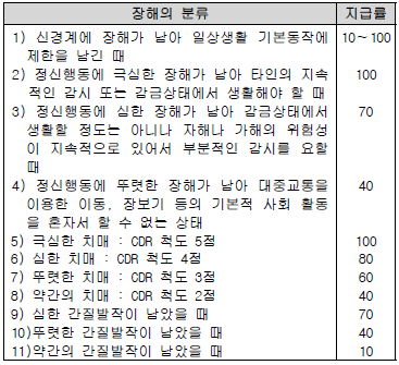 3) 의학적으로 뇌사판정을 받고 호흡기능과 심장박동기능을 상실하여 인공심박동기 등 장치에 의존하여 생명을 연장하고 있는 뇌사상태는 장해의 판정대상에 포함되지 않는다.