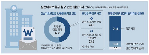 실손보험금 청구 간소화는 보험금을 청구할 때 병원을 재방문하고 복잡한 서류 정리를 거칠 필요 없이 자동으로 서류 작업을 완료할 수 있게 해주는 것이다. 현행 제도에서는 보험사별로 제각각인 관련 서류를 실물로 발급받아 제출해야 하는 까닭에 소비자들이 큰 어려움을 겪고 있다. 금융소비자연맹 등이 진행한 설문조사에 따르면 보험금을 청구할 수 있는 상황에서도 청구를 포기해본 경험이 있는 보험 가입자 비중이 47.2%였다. 이 가운데 청구 방법이 불편해 보험금 청구를 포기한 비율이 약 70%에 달했다.