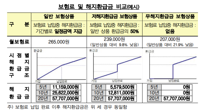 ③ 상품안내장 등에 일반 보험상품과 해지환급금을 비교·안내하고 있으니, 관련 자료를 꼼꼼히 살펴볼 필요가 있습니다.